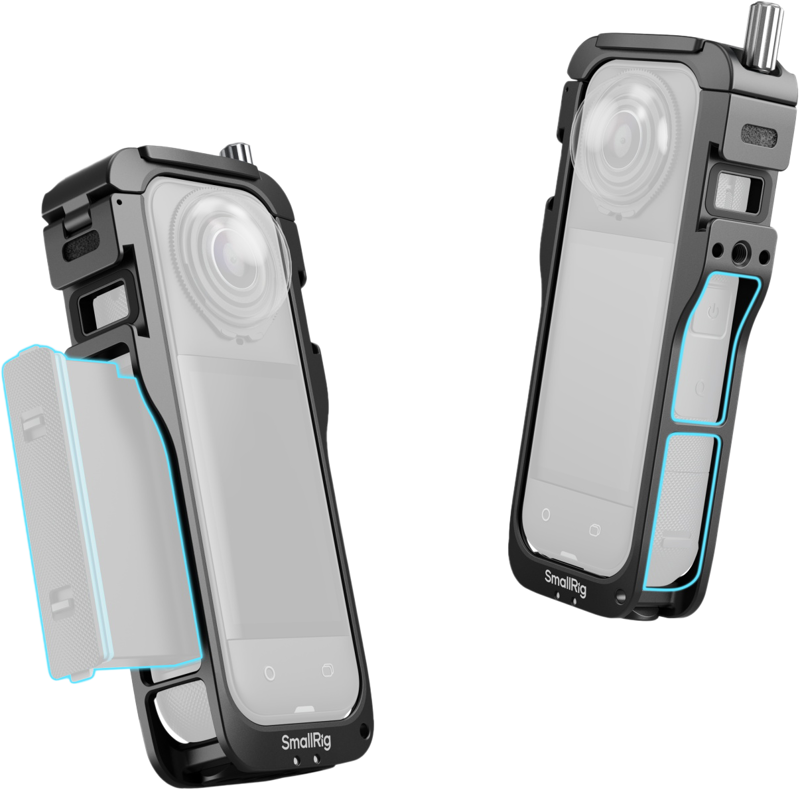 SmallRig 5195 Cage for Insta360 X5 Zaprojektowana z myślą o wydajności, klatka oferuje łatwy dostęp do baterii poprzez precyzyjne wycięcia boczne - nie wymaga demontażu. Jego dopasowana konstrukcja obejmuje kontury kamery z wewnętrzną silikonową wyściółką, aby zapobiec otarciom ciała. Instalacja jest łatwa - wystarczy wsunąć kamerę od góry i zabezpieczyć dołączoną śrubą motylkową.Dla akcesoriów; jedna strona posiada mocowanie zimnej stopki i 1/4"-20 gwintowany otwór do montażu mikrofonów lub świateł. Oprócz składanego uchwytu na kamerę akcji na podstawie znajduje się również gwintowany otwór 1/4"-20 do mocowania statywów lub kijków do selfie.