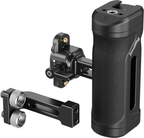 SmallRig 5532 Lekki mini zestaw uchwytów bocznychMożna go łatwo przymocować do klatek za pomocą zacisku NATO lub otworów gwintowanych 1/4"-20.Uchwyt można zmienić położenie po dowolnej stronie zestawu poprzez odłączenie i odwrócenie aluminiowego łącznika. Zestaw zawiera adapter zaciskowy NATO i szynę NATO zapewniającą kompatybilność z różnymi klatkami. Dodatkowo uchwyt umożliwia 30-milimetrową regulację pionową, co zapewnia optymalną równowagę i kontrolę. Lekki i przenośny, wytrzymuje obciążenie do 10 kg, a wbudowany magnetyczny klucz imbusowy ułatwia montaż i regulację