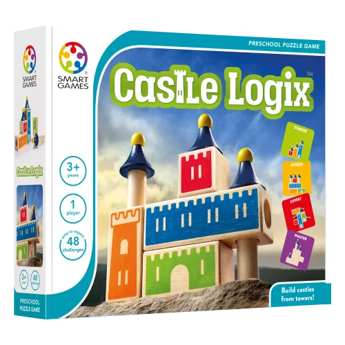 Zbuduj własny zamek! Stawiaj zamki blok po bloku i wieża za wieżą, tworząc budowlę o fantazyjnych kształtach. Użyj swojej pomysłowości oraz wyobraźni i skonstruuj zamek z pięknie wykonanych drewnianych elementów. Klocki muszą być połączone ze sobą za pomocą wieżyczek, tworząc zamek o określonym kształcie. Różna wysokość wieżyczek i położenie otworów w drewnianych blokach pozwalają na tworzenie niesamowitych konstrukcji. Zróżnicowany poziom trudności jest odpowiedni zarówno dla niedoświadczonych budowniczych, jak i dla wytrawnych architektów. Gra „Castle Logix” kształci umiejętność logicznego myślenia oraz rozwija wyobraźnię przestrzenną. Zawartość opakowania: • 4 drewniane klocki, • 3 drewniane wieże, • książeczka z 48 zadaniami i ich rozwiązaniami. Za co pokochasz tę grę? • Gra stworzona jest z naturalnych i trwałych materiałów bezpiecznych już dla najmłodszych. • Manipulowanie klockami przez dziecko to nie tylko świetna zabawa, ale również trening motoryki małej. • Gra świetnie sprawdzi się dla dzieci lubiących kreatywne wyzwania. Po ukończeniu książeczki z zadaniami dziecko może tworzyć własne, kreatywne budowle!