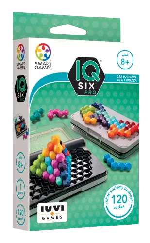 Tyle samo zabawy, co przy „IQ Puzzler Pro”, ale tym razem na heksagonalnej planszy! Jeśli „IQ Puzzler Pro” to dla Ciebie pestka, sięgnij po „IQ Six Pro”, czyli układankę logiczną dla prawdziwych koneserów. Znajdziesz w niej 120 zadań, zarówno dwuwymiarowych, jak i trójwymiarowych, do układania na trzy różne sposoby. Wewnątrz pudełka znajduje się pole gry dla zadań dwuwymiarowych oraz oddzielne miejsce na zadania trójwymiarowe, natomiast jego spód to obszar dla dodatkowych zadań dwuwymiarowych. Wszystko to w poręcznym, trwałym opakowaniu, które doskonale sprawdzi się w czasie podróży. Za co pokochacie tę grę? • Jest niewielkich rozmiarów, więc można w nią zagrać wszędzie. • Ma proste zasady, które gwarantują ogrom dobrej zabawy. • Uczy niestandardowego podejścia do rozwiązywania problemów. Zawartość opakowania: • plansza z pokrywką, • 12 kolorowych elementów układanki, • książeczka ze 120 zadaniami i ich rozwiązaniami.