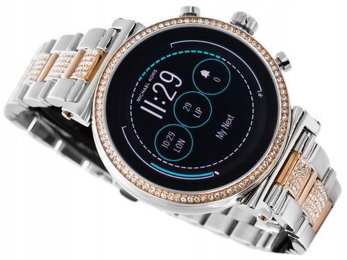 Smartwatch Michael Kors Sofie MKT5064 srebrny to elegancki i funkcjonalny smartwatch marki Michael Kors. Został wyposażony w wiele przydatnych funkcji takich jak pulsometr, krokomierz czy wysokościomierz, które umożliwiają kontrolowanie aktywności fizycznej. Smartwatch jest wodoszczelny, posiada obsługę ładowania bezprzewodowego oraz lokalizator GPS. Kompatybilność z systemami Android i iOS umożliwia dostęp do wielu aplikacji oraz połączeń telefonicznych bez konieczności korzystania z telefonu. Przekątna ekranu wynosi 1,19 cala, a rozdzielczość ekranu to 390 x 390 pikseli. Smartwatch Michael Kors Sofie MKT5064 srebrny to doskonały wybór dla osób, które cenią sobie połączenie stylu, funkcjonalności i nowoczesnych technologii.