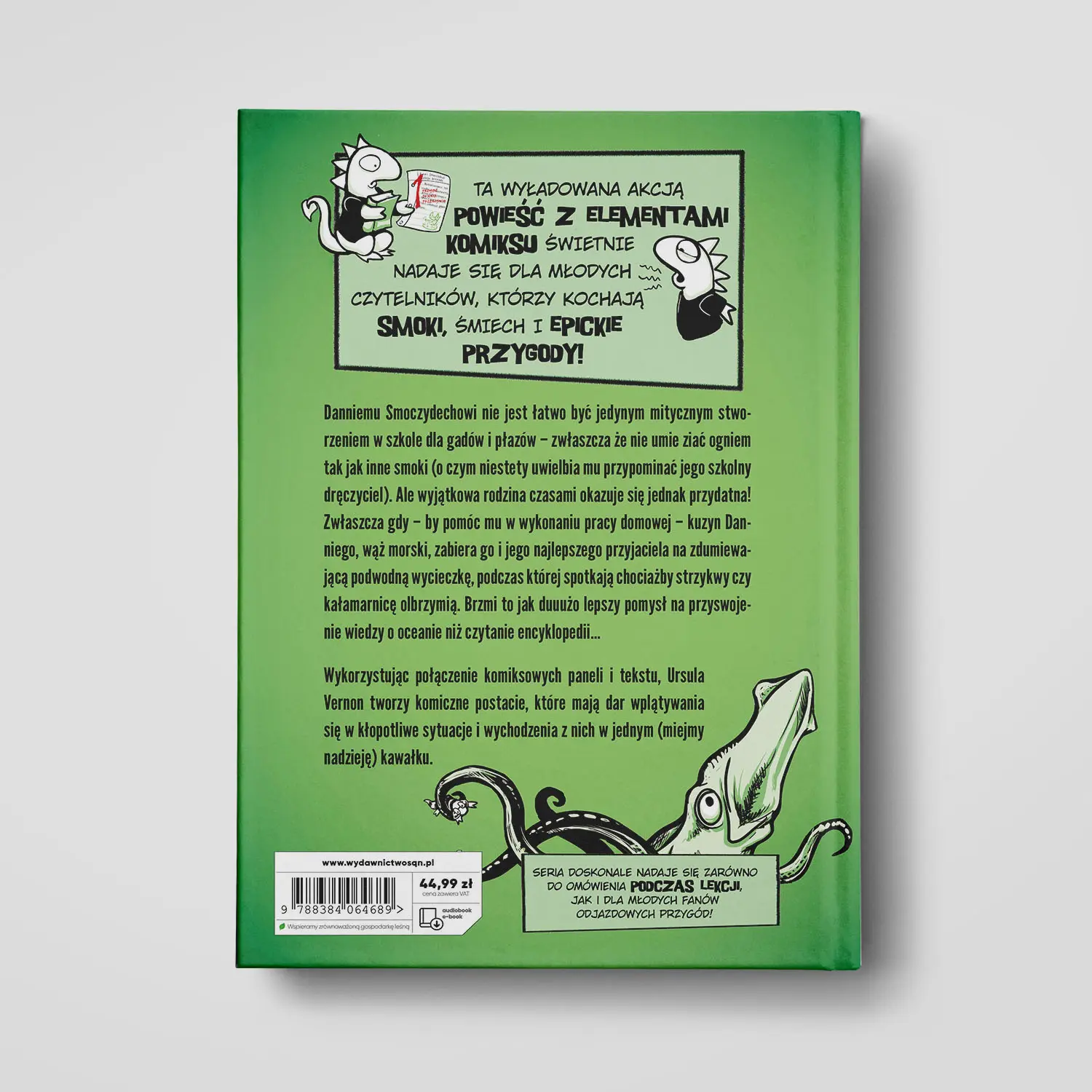 Ta wyładowana akcją powieść z elementami komiksu świetnie nadaje się dla młodych czytelników, którzy kochają smoki, śmiech i epickie przygody! Danniemu Smoczydechowi nie jest łatwo być jedynym mitycznym stworzeniem w szkole dla gadów i płazów – zwłaszcza że nie umie ziać ogniem tak jak inne smoki (o czym niestety uwielbia mu przypominać jego szkolny dręczyciel). Ale wyjątkowa rodzina czasami okazuje się jednak przydatna! Zwłaszcza gdy – by pomóc mu w wykonaniu pracy domowej – kuzyn Danniego, wąż morski zabiera go i jego najlepszego przyjaciela na zdumiewająca podwodną wycieczkę, podczas której spotkają chociażby strzykwy czy kałamarnicę olbrzymią. Brzmi to jak duuużo lepszy pomysł na przyswojenie wiedzy o oceanie niż czytanie encyklopedii… Wykorzystując połączenie komiksowych paneli i tekstu, Ursula Vernon tworzy komiczne postacie, które mają dar wplątywania się w kłopotliwe sytuacje i wychodzenia z nich w jednym (miejmy nadzieję) kawałku. Seria doskonale nadaje się zarówno do omówienia podczas lekcji, jak i dla młodych fanów odjazdowych przygód!