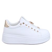 Sneakersy na platformie to idealna propozycja dla kobiet, które pragną połączyć wygodę z modnym stylem. Te buty sportowe w rozmiarze 37 wprowadzą do Twojej garderoby nowy, świeży akcent! Dzięki metaliczne wstawki oraz błyszczące, złote ozdoby, sneakersy te stanowią must have obecnego sezonu, przyciągając spojrzenia wszędzie tam, gdzie się pojawisz.