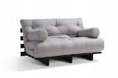Na zestaw składa się Futon Pascall Slim w kolorze Gołębiego popielu o wymiarach 180x200 cm, o grubości 14 cm oraz drewniana, czarna, sosnowa ławka będąca podstawą sofy.