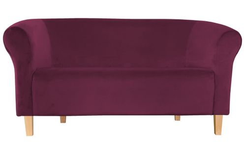 Miękka sofa wypoczynkowa wykonana z tkaniny typu Velvet, wyposażona w drewniane nóżki w kolorze buk.