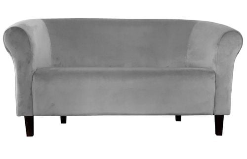 Miękka sofa wypoczynkowa wykonana z tkaniny typu Velvet, wyposażona w drewniane nóżki w kolorze venge.
