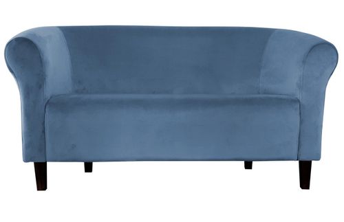 Miękka sofa wypoczynkowa wykonana z tkaniny typu Velvet, wyposażona w drewniane nóżki w kolorze venge.