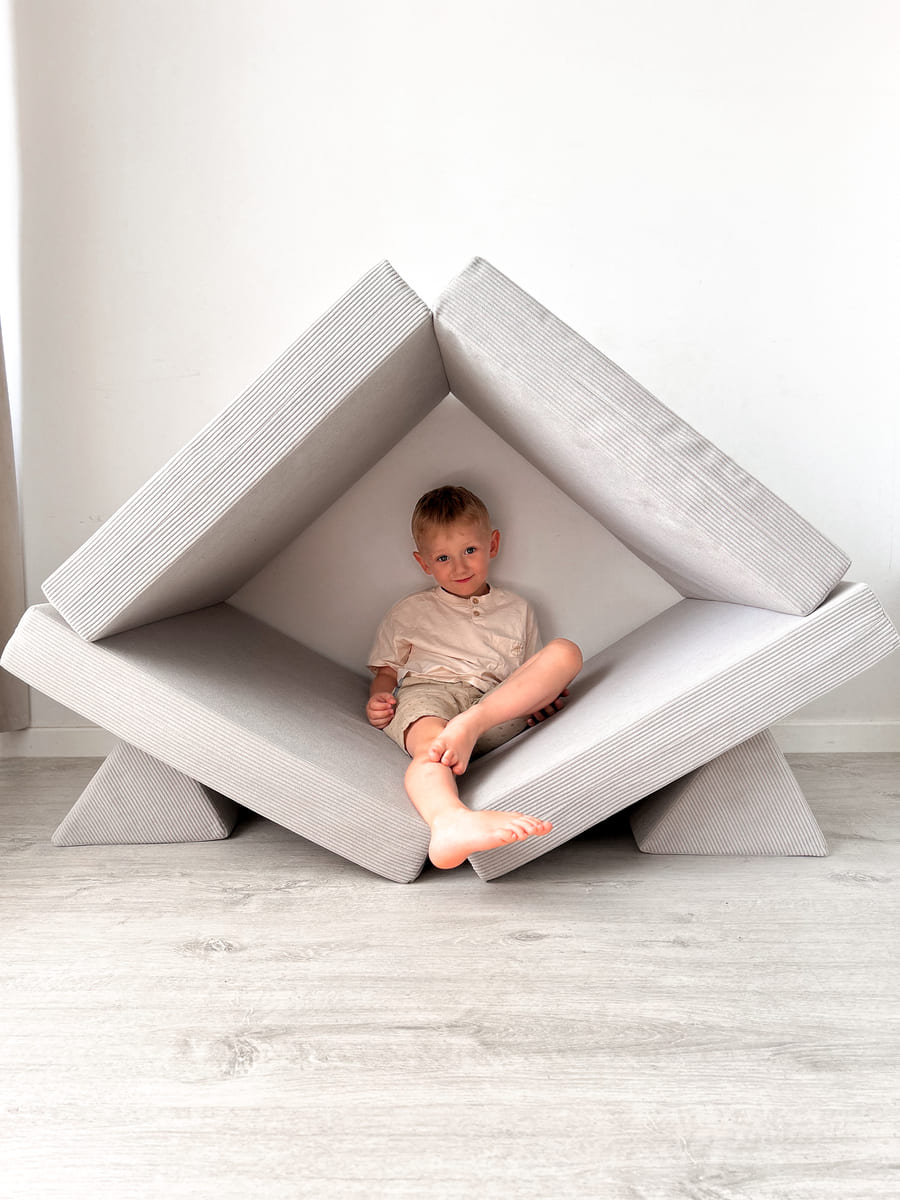 Sofa modułowa jest nie tylko wygodnym miejscem do odpoczynku, ale także stanowi inspirację do kreatywnej zabawy i nauki, umożliwiając dzieciom swobodne budowanie i aranżowanie własnych przestrzeni. Zdejmowane pokrowce pozwalają na szybkie i łatwe czyszczenie, co czyni sofę idealną do intensywnego użytkowania w domu, przedszkolu czy sali zabaw.