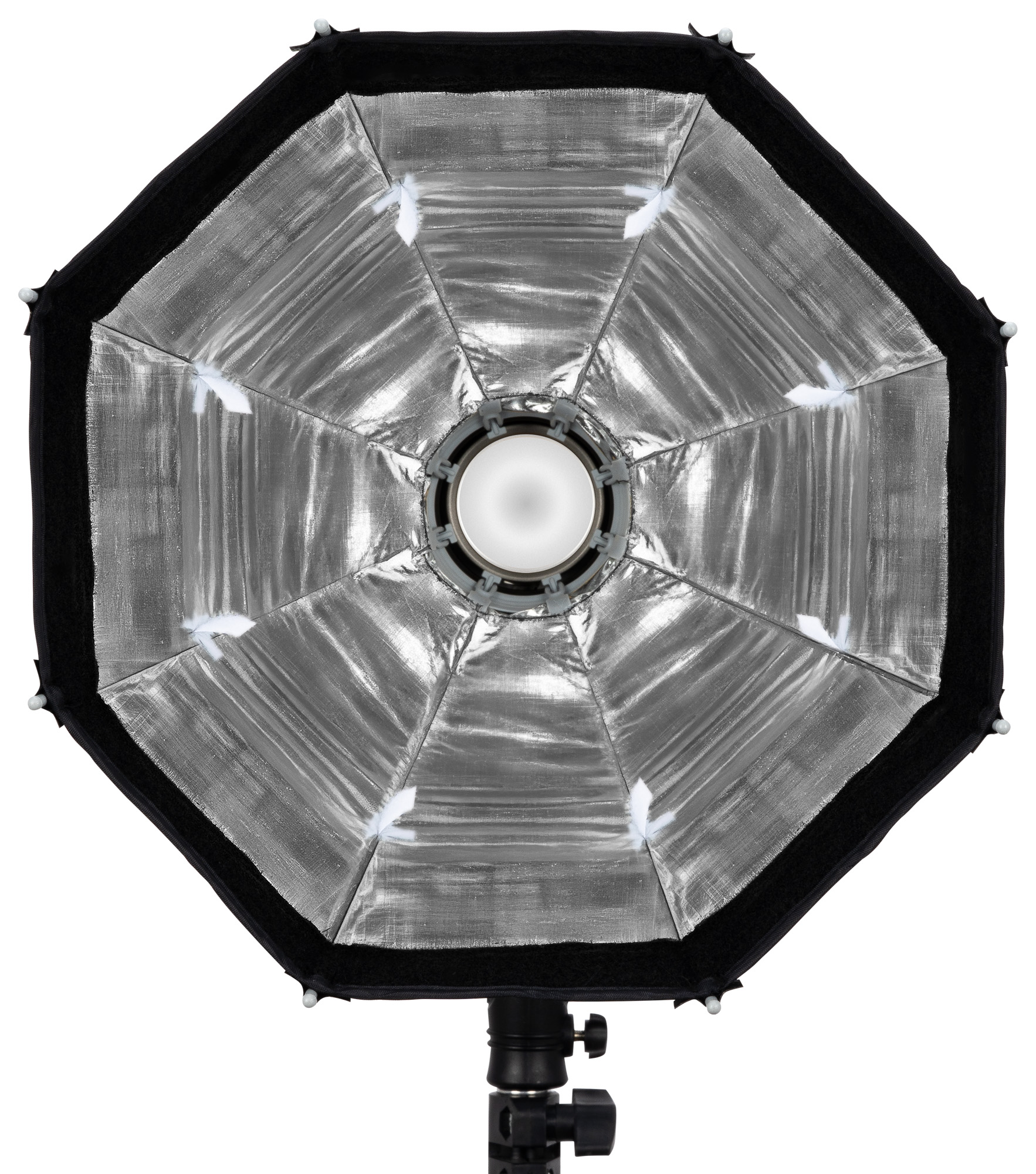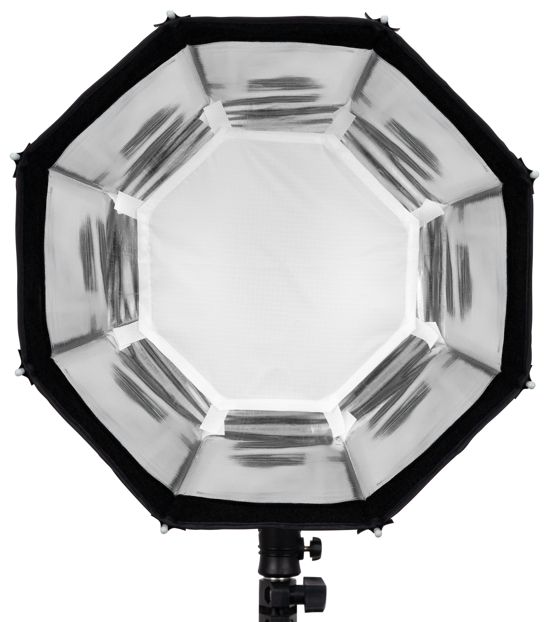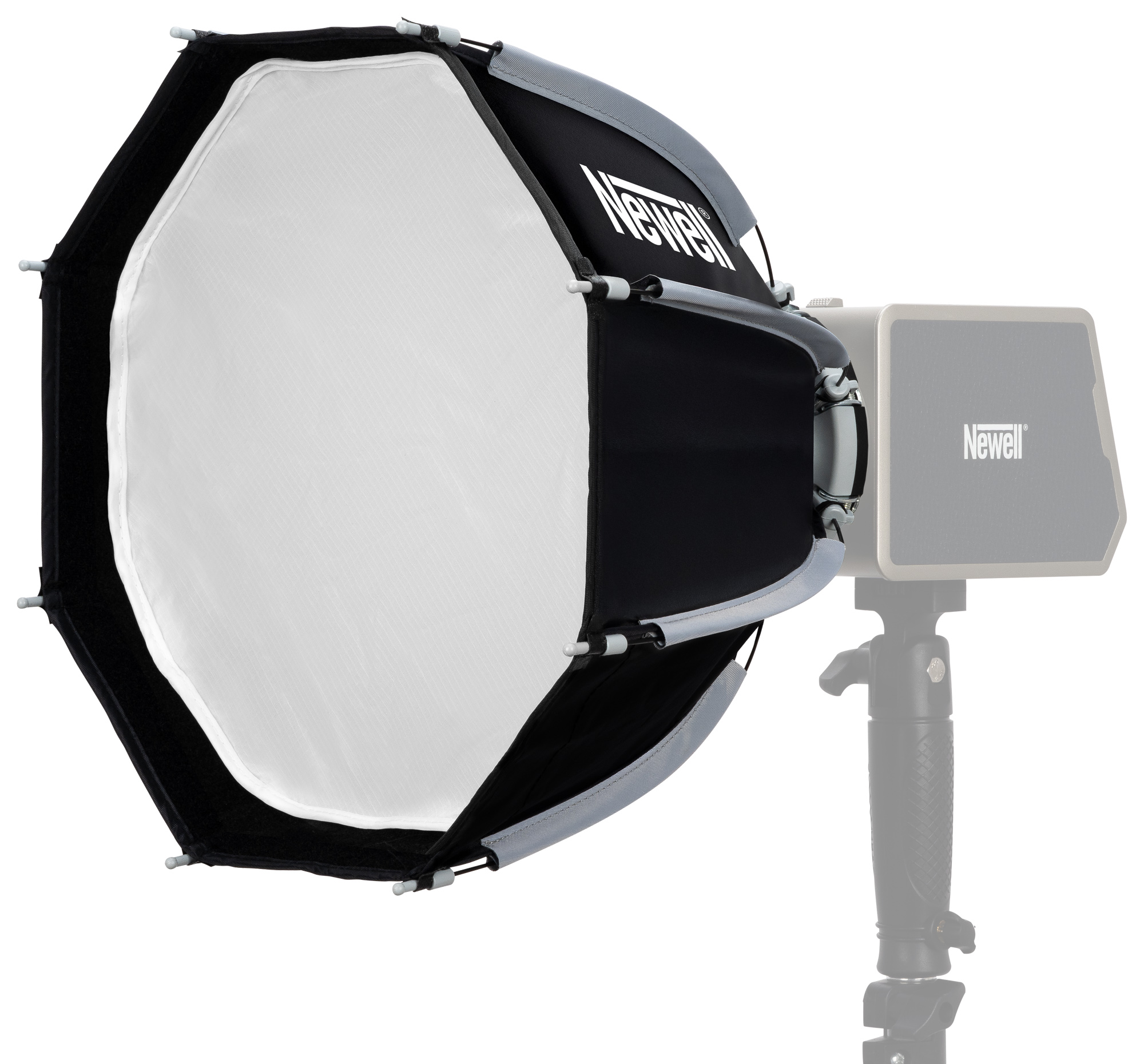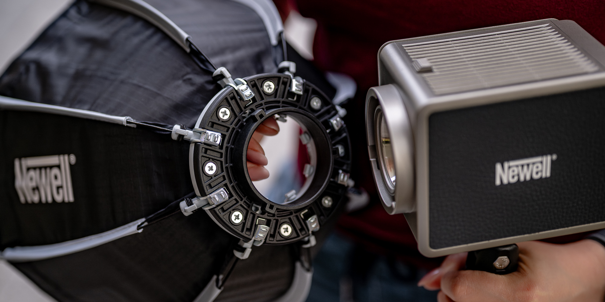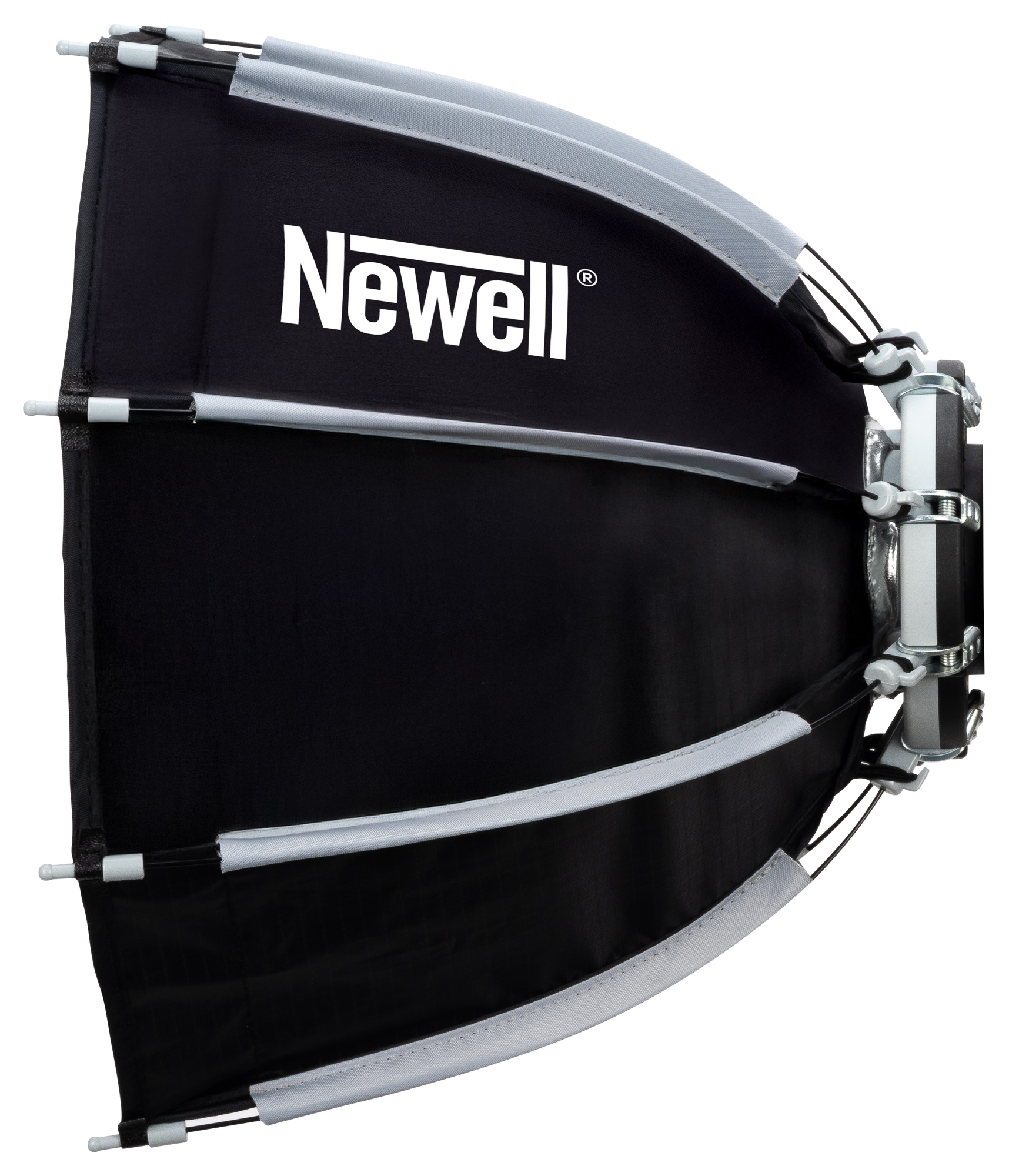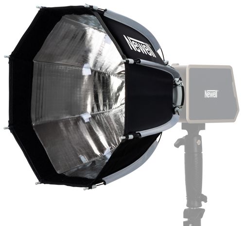 Prezentowany softbox oktagonalny Newell oferuje 30 cm średnicy po rozłożeniu. Taki modyfikator nie dominuje na planie zdjęciowym i nie zasłania kamery czy monitora. Na pewno docenisz go podczas pracy w ciasnych pomieszczeniach. To idealny kompromis pomiędzy mobilnością a funkcjonalnością – oferuje wystarczająco dużą powierzchnię, by zmiękczyć światło, ale jest na tyle mały, by zmieścić się nawet w bardzo małym studio.