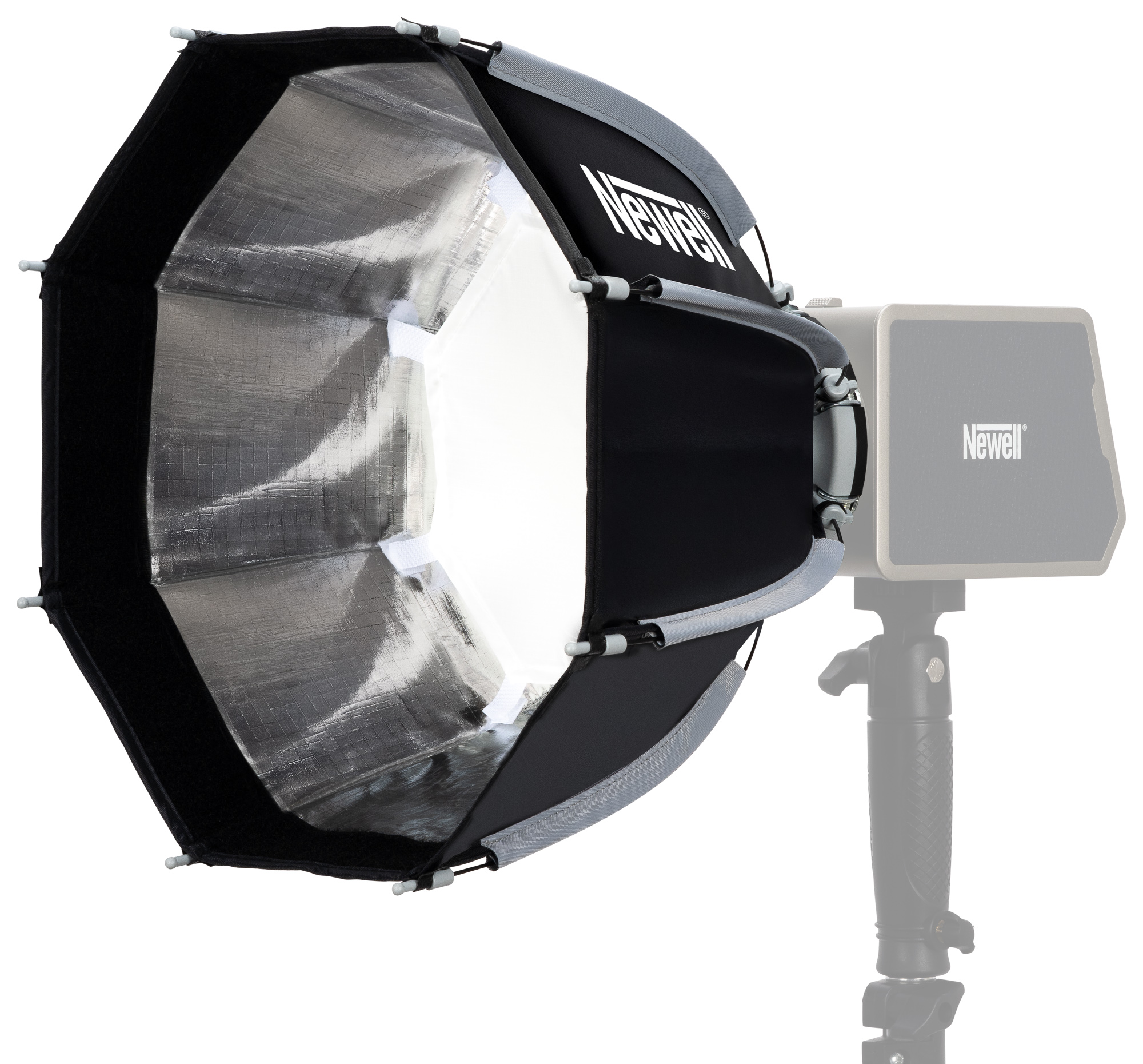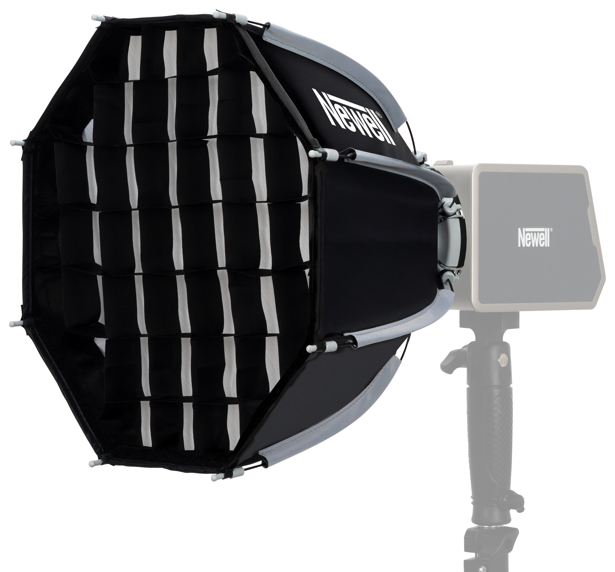 Dzięki 30 cm średnicy softbox oktagonalny Newell to idealny wybór dla osób, którym zależy na kompaktowych wymiarach i dużej mobilności. Świetnie nadaje się zarówno do fotografii portretowej, jak i produktowej. Z powodzeniem wykorzystasz go również przy produkcjach video nagrywanych smartfonem. W zestawie znajdziesz dwa dyfuzory, które umożliwiają regulację rozproszenia światła, oraz plaster miodu (grid), który precyzyjnie ukierunkuje wiązkę na wybrany obiekt. Dzięki temu masz pełną kontrolę nad każdym kadrem, wzbogaconym o miękkie, równomierne oświetlenie.
