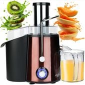 ✅ Cechy dodatkowe: 2 poziomy prędkości Niebieskie podświetlenie pokrętła, Moc obrotowa: 15000-18000obr/min Możliwość mycia w zmywarce elementów plastikowych, Super duży otwór na całe owoce i warzywa o średnicy 75mm Wysokiej jakości sitko ze stali nierdzewnej, Super duży otwór na całe owoce i warzywa o średnicy 75mm, Dzióbek ze stali nierdzewnej 2l pojemnik na miąższ 1l dzbanek na sok, Wszystkie elementy mające kontakt z żywnością nie zawierają BPA Wbudowany przełącznik bezpieczeństwa, Zabezpieczenie przed przegrzaniem Stabilna podstawa antypoślizgowa - przyssawki, Szczoteczka do czyszczenia Obudowa ze stali nierdzewnej, Długość przewodu zasilającego: 103cm Kolor przewodu zasilającego: czarny, Moc nominalna: 1000W Moc maksymalna: 2000W Zasilanie: 220-240V~50/60Hz