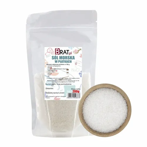 Opakowanie zawiera 200 g soli morskiej w płatkach.