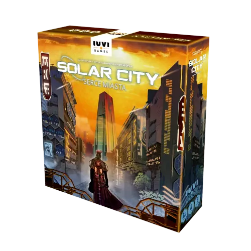 Potężne korporacje stanęły do walki o największe wpływy w mieście. Solarna Rewolucja – szczytna idea, która niegdyś połączyła największe światowe umysły w walce, gdzie stawką była odbudowa naturalnego środowiska przeobraziła się w okrutną walkę o jak największe zyski. Bezwzględny lobbing deweloperów,zainteresowanych wyłącznie pozyskaniem jak najcenniejszych gruntów pod budowę majestatycznych wieżowców i drapaczy chmur, przynosi ofiary. Porozumienie między właścicielami korporacjami, które z takim trudem wypracowano lata temu, łamane jest niemal codziennie, a brutalne prawo rynku ściąga na skraj bankructwa nieostrożnych inwestorów. Ekologiczna rewolucja odsłania swoją druga, mroczniejszą twarz. Witamy w „Solar City. Serce Miasta”. To pierwszy z dodatków do gry „Solar City”, w którym znajdziecie 6 typów zupełnie nowych budynków. Każdy z nich wprowadza do gry interakcję między graczami. Inwestuj w nieruchomości innych,przejmuj wpływy w mieście przeciwników lub aktywuj swoje dzielnice, zbierając podatek od innych graczy. To i jeszcze więcej znajdziesz w samym sercu miasta,gdzie walka o wpływy nabrała zupełnie nowego kolorytu. Nowe typy budynków z tego dodatku można dowolnie łączyć z budynkami z gry podstawowej. Zawartość opakowania: • 54 dwustronne kafle Budynków, • 6 kart Budynków, • 6 drewnianych znaczników Crystal, • 12 drewnianych znaczników Waterfall, • instrukcja.
