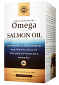 Solgar Full Spectrum Omega Salmon Oil to suplement diety zawierający najczystszy olej z dzikiego łososia alaskańskiego. Stanowi bogate źródło nienasyconych kwasów tłuszczowych, w tym kluczowych kwasów omega-3, a także omega-5, 6, 7 i 9 oraz astaksantyny. Unikalny skład zapewnia kompleksową pielęgnację organizmu.