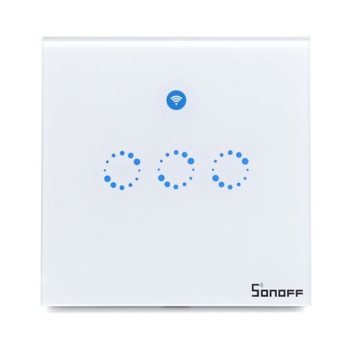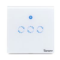 Sonoff Touch T1 UK - dotykowy 3 kanałowy włącznik światła, którym możemy również sterować za pomocą Wifi oraz pilota radiowego RF 433MHz. Wyłącznik wyróżnia się eleganckim wykonaniem - panel przedni został wykonany ze szkła hartowanego.