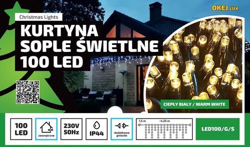Ten profesjonalny zestaw sopli LED zewnętrznych o grubości 4,25m z 100 diodami w ciepłym białym kolorze to gwarancja niezawodnego blasku, który przetrwa wiele sezonów. Grube, gumowane przewody i solidna izolacja IP44 zapewniają odporność na warunki atmosferyczne, tworząc efektowne, zwisające wiązki o różnej długości, idealne do dekoracji werandy, tarasu czy balkonu.