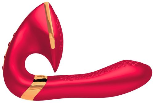Luksusowy wibrator Soyo od Shunga w wyrafinowanym, eleganckim designie do jednoczesnego pieszczenia pochwy, warg sromowych i łechtaczki