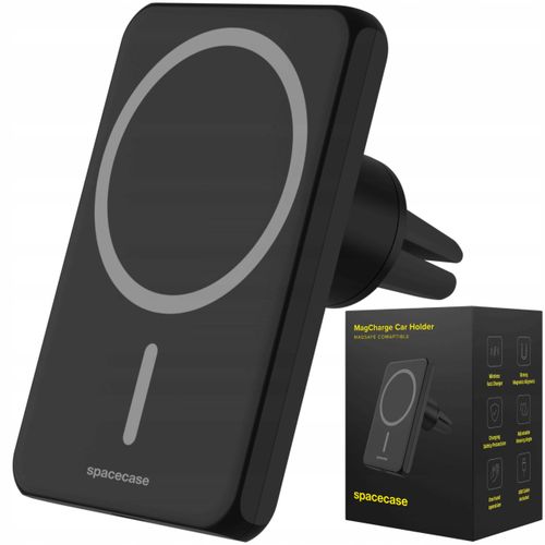 Nowoczesny i stylowy uchwyt Spacecase z kolekcji kompatybilnej z MagSafe, teraz z funkcją ładowania. Posiada silny magnes oraz mocowanie na kratkę nawiewu.