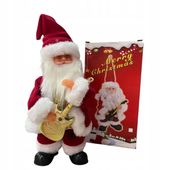 ✔️Wyjątkowy design z tradycyjnym czerwonym strojem, białym futerkiem i złotą gitarą, który idealnie wpasowuje się w świąteczne aranżacje i przyciąga wzrok.