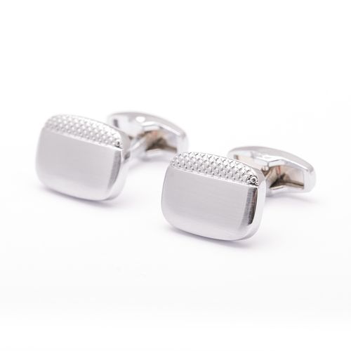 Efektowne spinki do mankietów łączące klasykę i nowoczesny styl. Srebrna, satynowa górna część oraz przykuwające uwagę tłoczone obrzeże wykonane ze stali. Ten surowiec od lat jest materiałem dekoracyjnym stosowanym w męskiej biżuterii - fantastyczna gra ułożonego wzoru przykuwa wzrok i podkreśla wyjątkowość całej męskiej stylizacji. Spinki do koszuli to idealny dodatek na wielkie uroczystości, np. ślub lub bankiet.