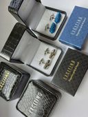 Zestaw jest zapakowany w eleganckie kartonowe pudełko o kompaktowych wymiarach, co czyni go idealnym, gotowym upominkiem dla mężczyzn i kobiet ceniących klasę. Czarna kolorystyka pudełka podkreśla wyrafinowanie, a jakość materiałów gwarantuje, że całość wygląda premium i chroni spinki przed uszkodzeniami podczas przechowywania czy transportu.