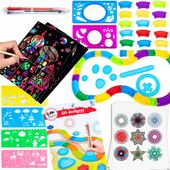 Zestaw zawiera bogatą paletę elementów, w tym 6-kolorowy długopis, arkusze papieru, szablony, prowadnice oraz elementy do budowania własnego, niepowtarzalnego toru do rysowania. To nieograniczona przestrzeń do tworzenia autorskich dzieł sztuki!