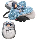 Śpiworek przystosowany jest do fotelika, gdyż posiada otwory na 3 oraz 5 punktowe pasy bezpieczeństwa.