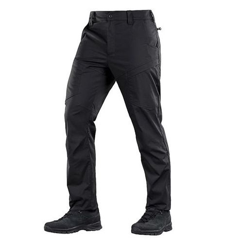 Spodnie z firmy M-Tac Patrol Flex łączą w sobie materiały oraz ukrytą rozszerzoną funkcjonalnością, która jest skierowana przede wszystkim do funkcjonariuszy organów ścigania. Spodnie szyte z lekkiej, jednobarwnej tkaniny rip-stop z ochronną warstwą z teflonu chroniącą przed wodą i brudem. Tkanina z zawartością poliestru i bawełny jest przyjemna dla ciała, dobrze trzyma kolor i charakteryzuje się wysoką trwałością. Głównym zadaniem projektantów spodni było zapełnienie komfortu ruchów, a poradzili sobie z tym zadaniem w stu procentach, ponieważ spodnie dają poczucie lekkości, nie krępujące ruchów oraz wyglądają stylowo i solidnie. Spodnie zapinane są na guzik i zamek błyskawiczny YKK.