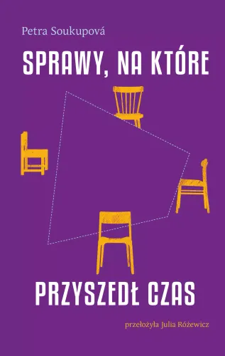 Petra Soukupová, „specjalistka od krojenia rodziny”, po kilku powieściach skupionych na relacjach między rodzeństwem czy rodzicami a dziećmi w swojej najnowszej książce, Sprawy, na które przyszedł czas, pierwszy raz bierze pod pisarski skalpel parę małżeńską. Wiwisekcję ich związku przeprowadza od pierwszej randki, poprzez fazę urządzania się „na swoim”, narodziny dzieci, codzienne przepychanki o bzdury i o sprawy istotne, aż do przełomu.