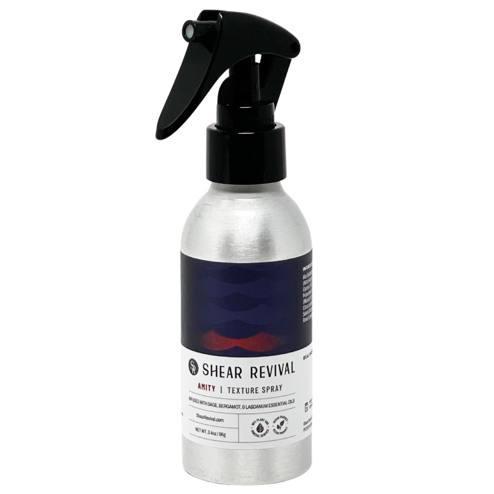Shear Revival Amity Texture Spray to spray teksturujący, który wprowadza nową jakość do klasycznych preparatów na bazie soli morskiej. Dzięki połączeniu soli morskiej z Atlantyku i australijskiej glinki kaolinowej, zapewnia spektakularną objętość, strukturę i teksturę włosów.