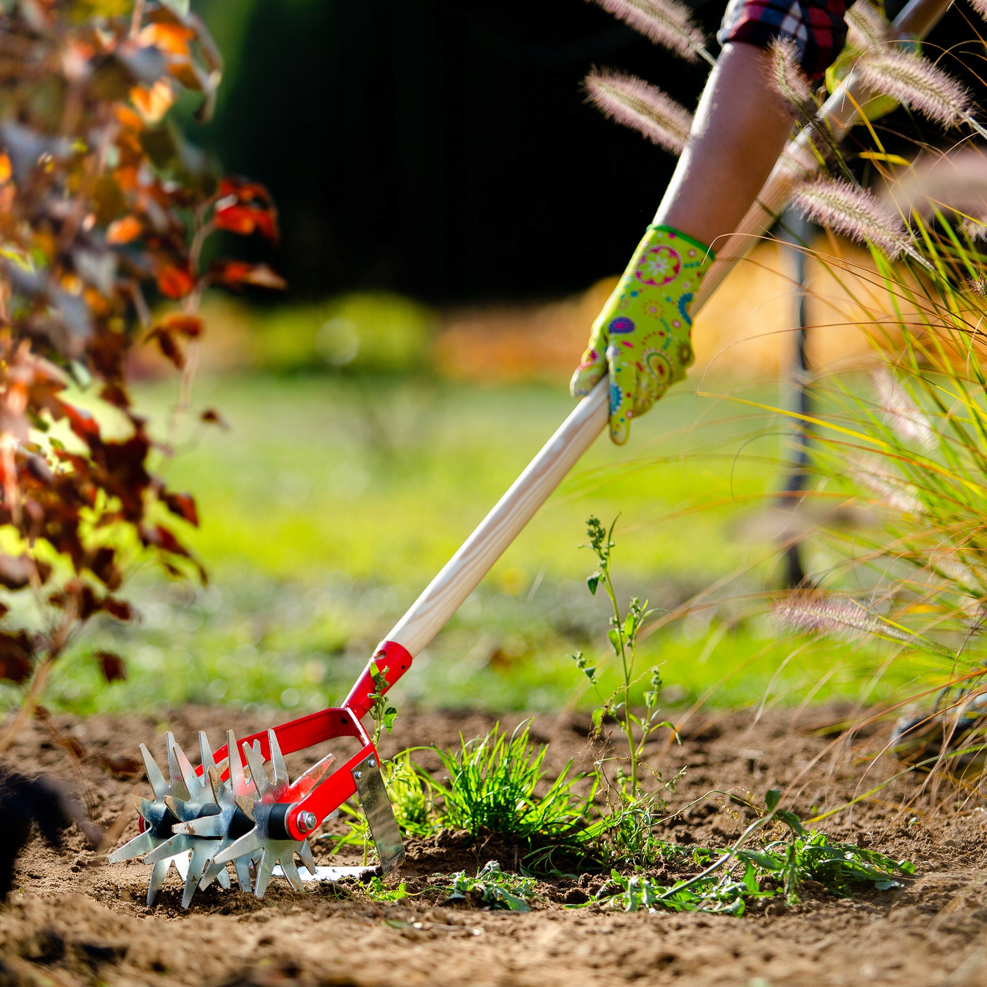 Zęby narzędzia zagłębiają się w glebę i spulchniają ją, pozostawiając szczeliny powietrzne i grudki ziemi. Wpływa to na polepszenie jakości gleby, która odpowiednio spulchniona, zapewnia roślinom prawidłowy rozwój. Spulchniona ziemia usprawnia również przesadzanie lub zasadzanie nowych kwiatów i krzewów. Dzięki narzędziu poradzisz sobie też z chwastami, które pod wpływem nacisku załączonego podcinacza zostają usunięte z gleby. Część robocza wykonana została z wytrzymałej stali.