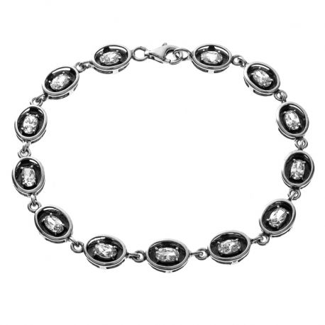 Wyjątkowa, przestrzenna bransoletka o oryginalnym wzorze. Wykonana z wysokiej jakości srebra próby 925. Wysadzana białymi, niesamowicie błyszczącymi cyrkoniami, które dodają blasku bransolecie.