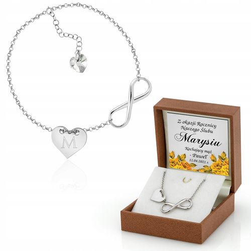 Srebrna Bransoletka INFINITY ROCZNICA z sercem i grawerem – Doskonały Prezent na Każdą Okazję!