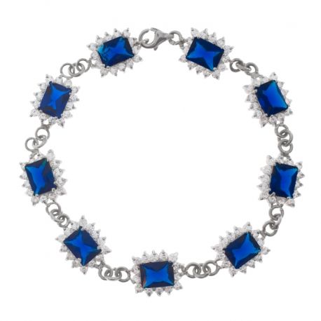 Pięknie lśniąca bransoletka ozdobiona szafirami syntetycznym oraz delikatnymi, białymi cyrkoniami. Całość została kunsztownie wykonana z największą dbałością o szczegóły z wysokiej jakości srebra próby 925. Ta elegancka ozdoba będzie świetnym wyborem na prezent dla bliskiej osoby.