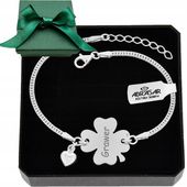 Ta elegancka srebrna bransoletka z motywem koniczynki to doskonały wybór na niezapomniany upominek. Koniczynka symbolizuje szczęście, co czyni ten wyrób biżuterii idealnym prezentem na wiele okazji.