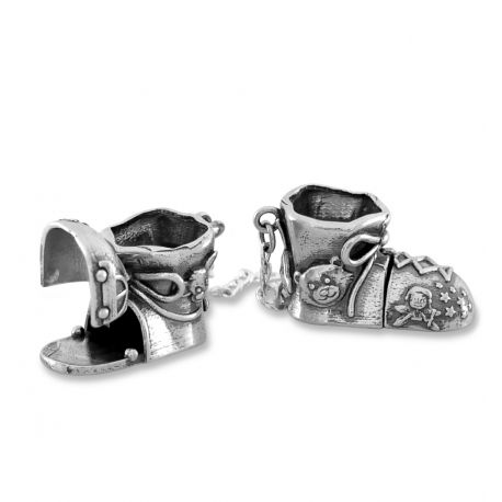 Przód bucików jest otwierany, można przechować w nich np pierwszy ząbek dziecka.