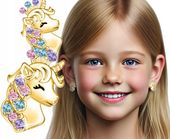 Te srebrne kolczyki jednorożce wkrętki dla dziecka, model z Mennicy Bydgoskiej (63/5), zachwycają nie tylko uroczym designem z motywem jednorożca, ale także wyjątkową precyzją wykonania. Wysadzane najwyższej klasy cyrkoniami AAA, które imitują blask diamentów, zapewniają delikatny, ale trwały urok, idealnie pasujący do dziecięcej codzienności.
