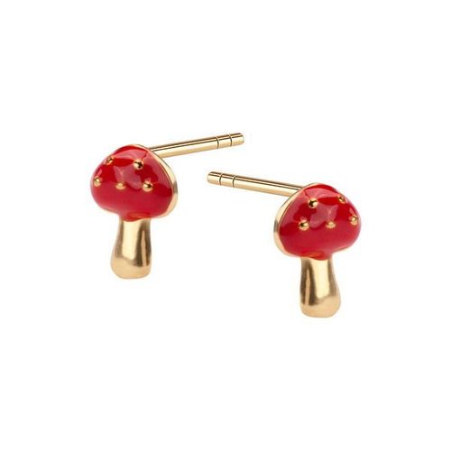 Staviori Kolczyki. Emalia. Srebro 0,925. pokryte żółtym złotem Długość 7 mm. Szerokość 4 mm. Kolczyki srebrne, pozłacane w kształcie muchomorka. Ozdobione emalią.