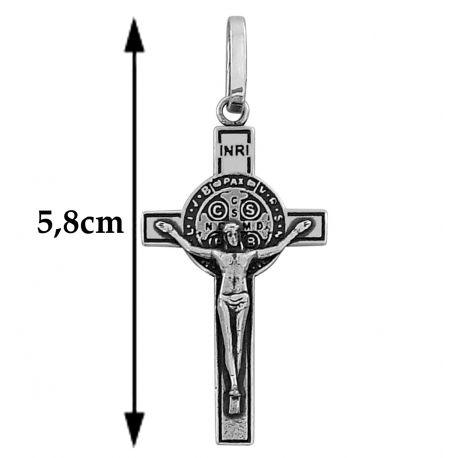 Wymiary krzyża to szerokość 25mm oraz wysokość 58mm z zawieszką. Jego rozmiar sprawia, że stanowi on efektowny dodatek do każdej stylizacji, zarówno codziennej, jak i odświętnej. Z pewnością przyciągnie spojrzenia i wzbudzi zainteresowanie.