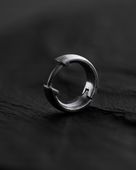 Srebrny kolczyk "THE HOOP" to kwintesencja doskonałego wzornictwa. Jego prosta, geometryczna forma kręgu uosabia czystość linii i ponadczasową elegancję, której nie można się oprzeć. Matowe, czarne wykończenie nadaje temu unikatowemu akcentowi głębi i charakteru.