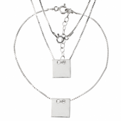 Srebrny Komplet Celebrytki Kwadraty Pr. 925 z Grawerem Gratis to elegancki zestaw biżuterii, którego nie może zabraknąć w Twojej kolekcji. Stworzony z wysokiej jakości srebra o próbie 925, ten wyjątkowy komplet składa się z pięknie wykonanej bransoletki oraz naszyjnika, ozdobionych niezwykłymi kwadratowymi celebrytkami, które przyciągają wzrok i dodają szyku każdej stylizacji.