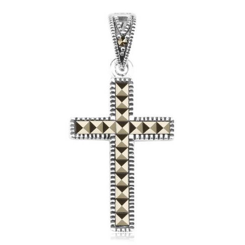 srebrny mały krzyżyk z markazytami 925