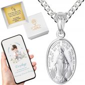 Ten wyjątkowy srebrny łańcuszek o długości 50 cm z medalikiem Cudownej Matki Boskiej został precyzyjnie wykonany z dbałością o każdy szczegół, zapewniając trwałość i elegancję na lata. Idealny na chrzest, komunię czy inne ważne chwile, medalik dwustronny o wymiarach 1 cm x 1.5 cm doskonale dopasowuje się do delikatnej szyi dziecka, oferując subtelny blask i niezawodne wykonanie.