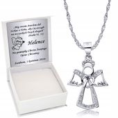Ten wyjątkowy srebrny łańcuszek z zawieszką w kształcie aniołka to prawdziwe arcydzieło zręczności i dbałości o najdrobniejsze detale. Każdy element został wyrzeźbiony z najwyższą starannością, podkreślając piękno i kunszt wykonania.