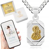 Ten srebrny medalik z wizerunkiem Matki Boskiej w próbie 925, dołączony do łańcuszka o długości 45 cm, wyróżnia się precyzyjnym wykonaniem i dbałością o każdy detal, co zapewnia wyjątkową trwałość i blask na lata. Idealny na komunię lub chrzest, ten zestaw to nie tylko biżuteria, ale symbol głębokiej wiary, który z wdziękiem podkreśla codzienne noszenie.