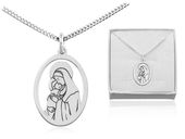 Ten srebrny medalik z Matką Boską i Dzieciątkiem, wykonany w całości ze srebra próby 925, zachwyca delikatnym wykończeniem i precyzją detali. Jego kompaktowe wymiary – wysokość z zawieszką około 20 mm i szerokość około 12 mm – czynią go idealnym towarzyszem na co dzień, zapewniając subtelną elegancję i trwałe piękno.