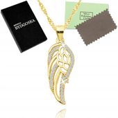 Ten naszyjnik z zawieszką w kształcie skrzydła to prawdziwy cud jubilerski. Wykonany z najczystszego srebra próby 925 i pokryty 24-karatowym złotem, zapewnia niezrównaną trwałość i blask. Subtelny, a zarazem wyrazisty design czyni go idealnym dodatkiem do każdej stylizacji.