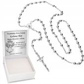 Różaniec gwarantuje pełną dyskrecję i wygodę, z wagą zaledwie 10 g (+/-0,5 g), co czyni go lekkim i praktycznym towarzyszem. Dodatkowy krzyżyk o wymiarach 32 x 12 mm podkreśla jego solidną konstrukcję, umożliwiającą codzienne użytkowanie bez obaw o trwałość czy utratę blasku.
