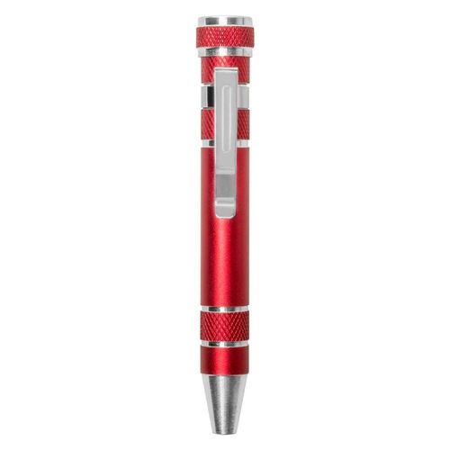 Śrubokręt w kształcie długopisu z lampką LED i końcówkami: 3 płaskie i 3 krzyżakowe