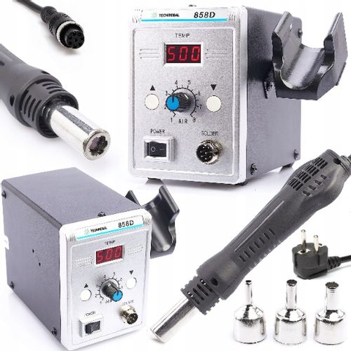 Stacja Hot-Air Techrebal 858D to idealne narzędzie do szerokiego spektrum zadań, od naprawy plastikowych elementów, przez spawanie różnych tworzyw, aż po precyzyjne lutowanie i obsługę elementów SMD. Dzięki wydajnemu wentylatorowi i możliwości stosowania różnych dysz, urządzenie zapewnia trwałą i niezawodną pracę przez długie lata.